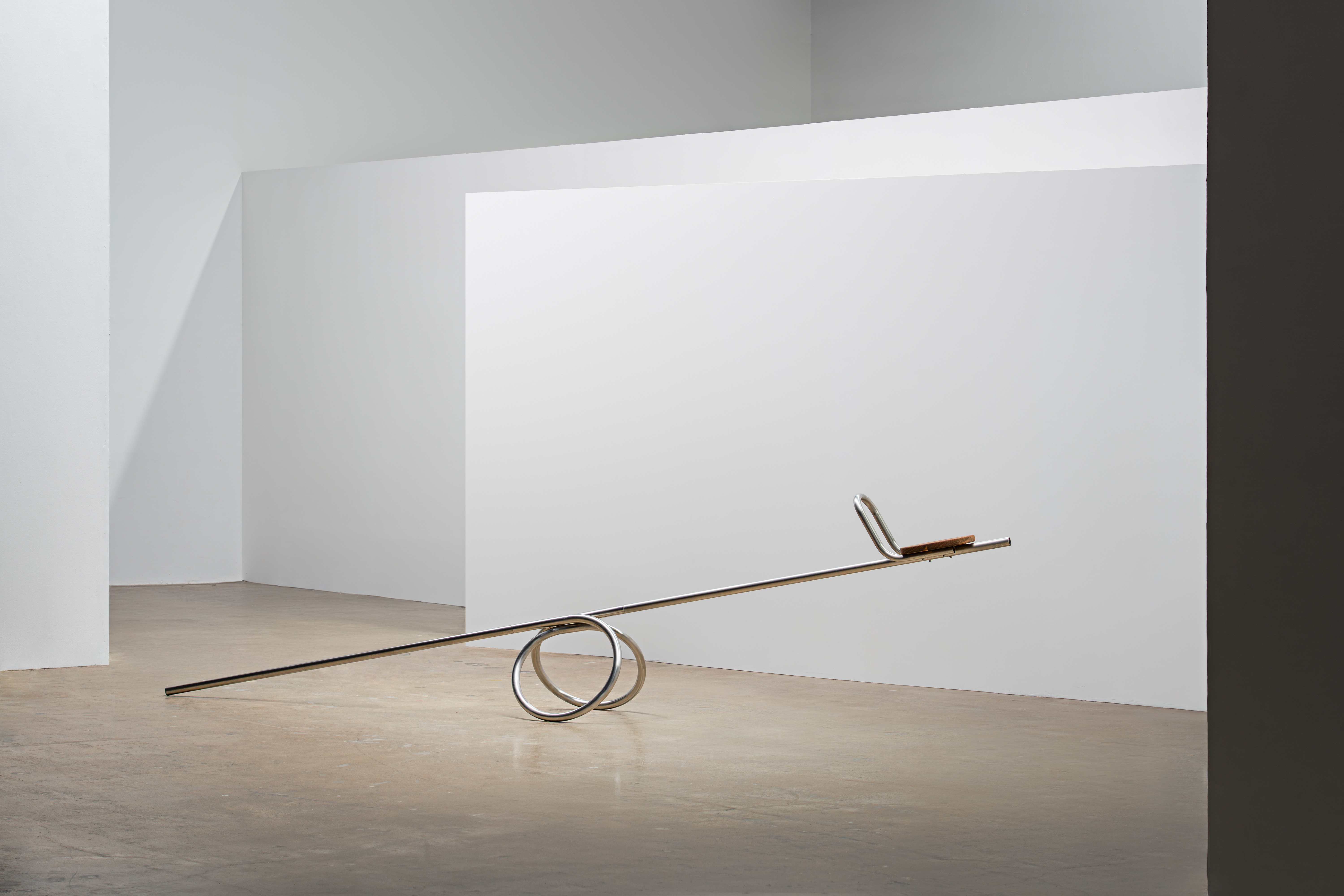 Unbalanced metaphorically reveals low birth rates and population imbalance through the unfamiliar form of a seesaw designed for one person. A seesaw, which typically requires two people to move, is reimagined by the artist as a static, silent sculpture, prompting reflection on the notions of “coexistence” and “relationship.” This familiar object, rooted in the premise of being “together,” becomes dysfunctional, and its imbalance evokes a sense of alienation.
